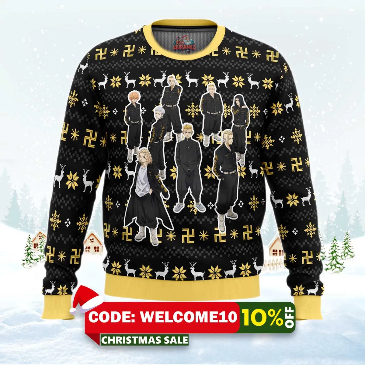 ⚠️ Limited stock available. Order your The Buddhist Symbol Tokyo Revengers Ugly Christmas Sweater today from Auramez.com and make this season unforgettable!