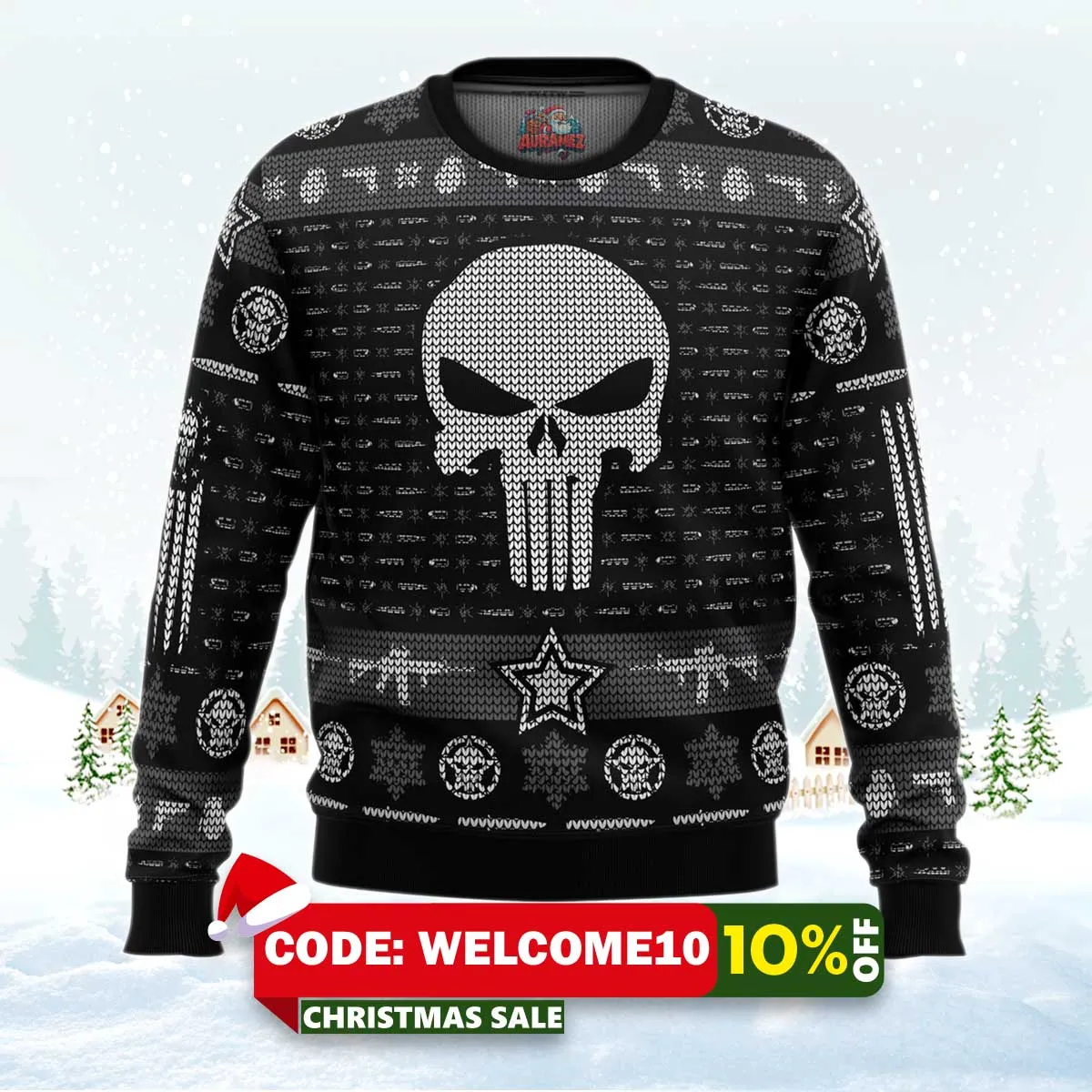⚠️ Limited stock available. Order your The Punisher Ugly Christmas Sweater today from Auramez.com and make this season unforgettable!