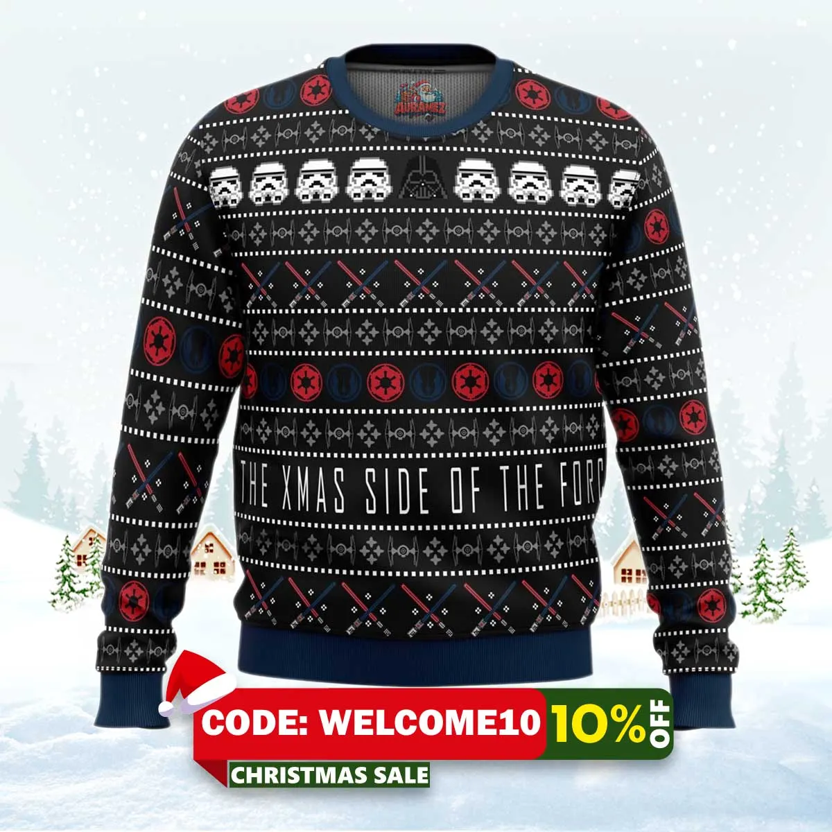 ⚠️ Limited stock available. Order your Xmas Side Of The Force Star Wars Ugly Christmas Sweater today from Auramez.com and make this season unforgettable!
