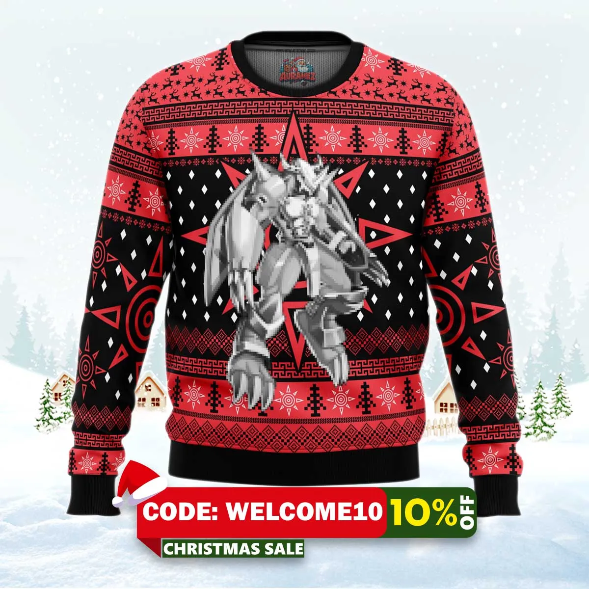⚠️ Limited stock available. Order your Wargreymon Digimon Ugly Christmas Sweater today from Auramez.com and make this season unforgettable!