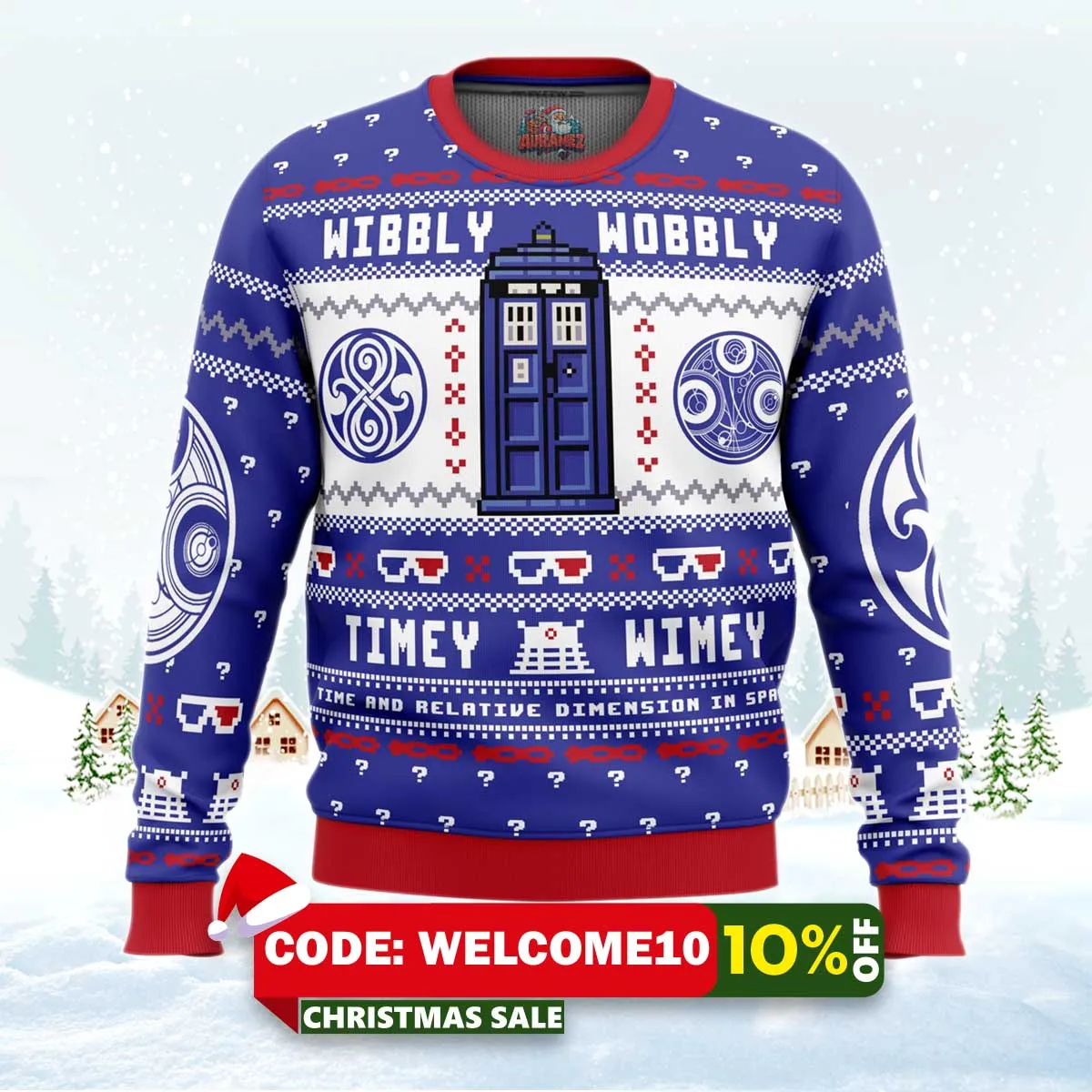 ⚠️ Limited stock available. Order your Wibbly Wobbly Doctor Who Ugly Christmas Sweater today from Auramez.com and make this season unforgettable!