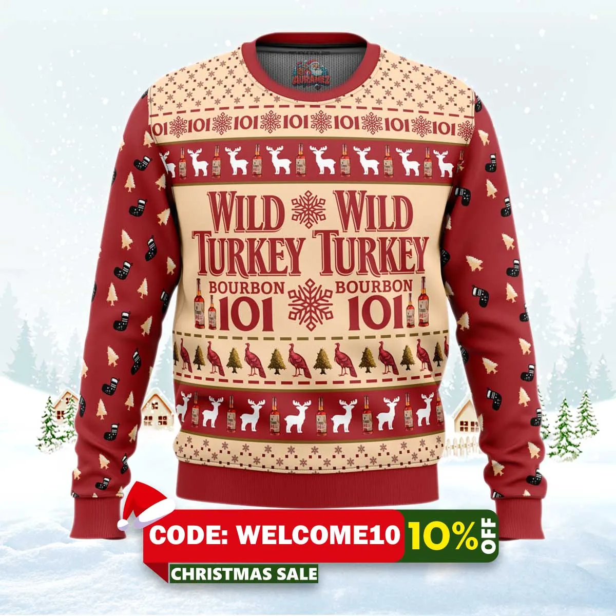 ⚠️ Limited stock available. Order your Wild Turkey Bourbon Ugly Christmas Sweater today from Auramez.com and make this season unforgettable!
