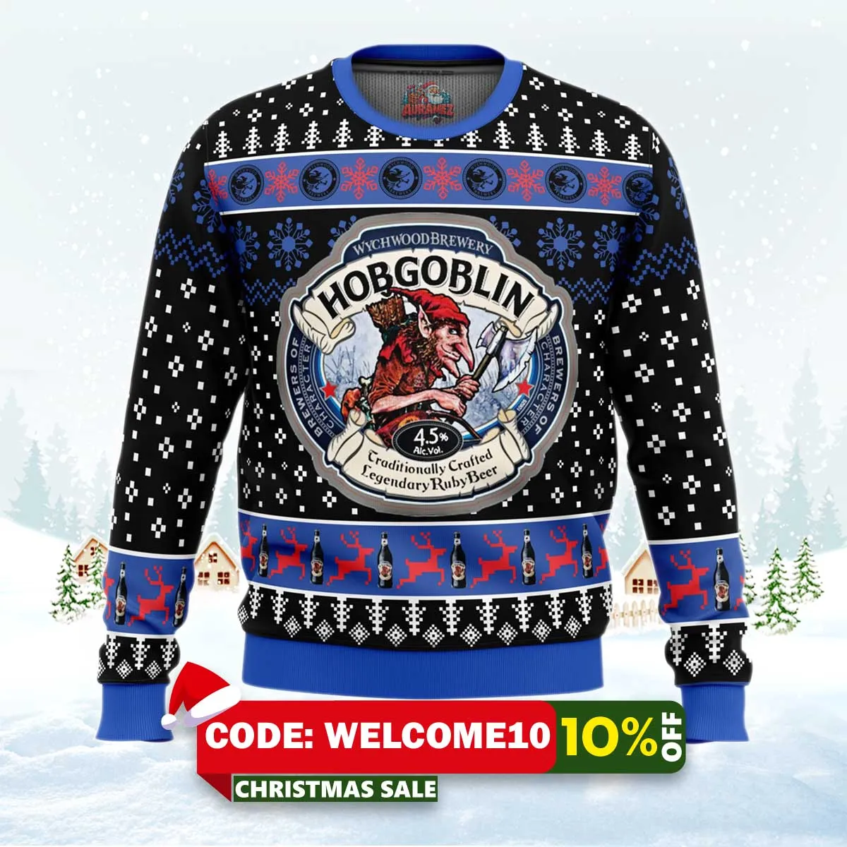 ⚠️ Limited stock available. Order your Wychwood Brewery Hobgoblin Ugly Christmas Sweater today from Auramez.com and make this season unforgettable!