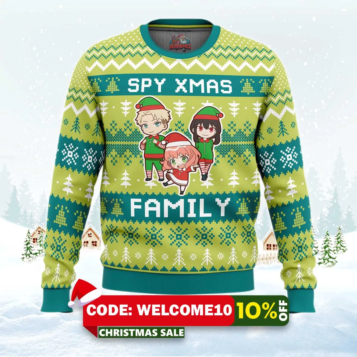 ⚠️ Limited stock available. Order your Xmas Family Spy X Family Ugly Christmas Sweater today from Auramez.com and make this season unforgettable!
