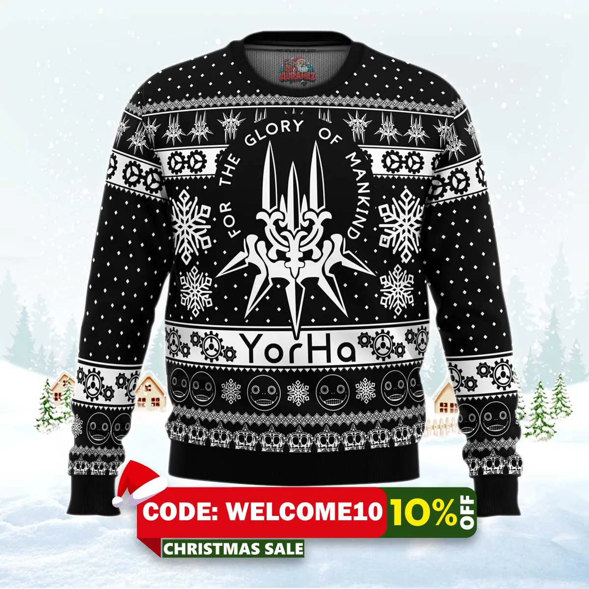 ⚠️ Limited stock available. Order your Yorha Nier Automata Ugly Christmas Sweater today from Auramez.com and make this season unforgettable!
