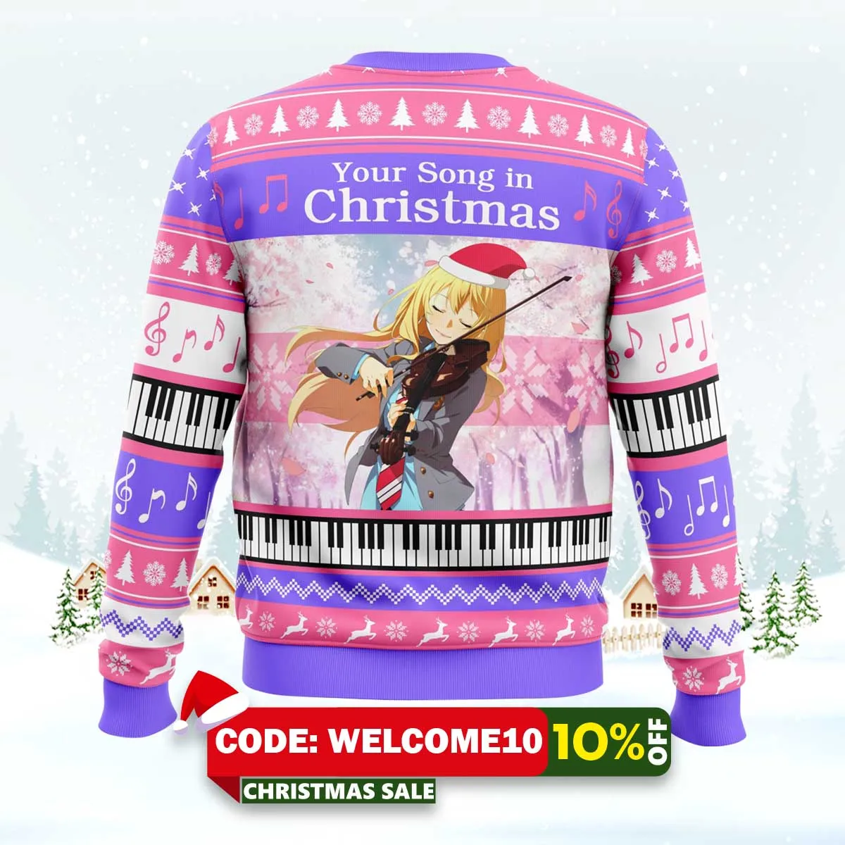 As the holiday season approaches, there’s no better way to express your love for Your Lie In April than with this playful and nostalgic sweater. Whether you’re hosting a holiday party or just looking to feel festive, our sweater is the perfect blend of fun and fandom!