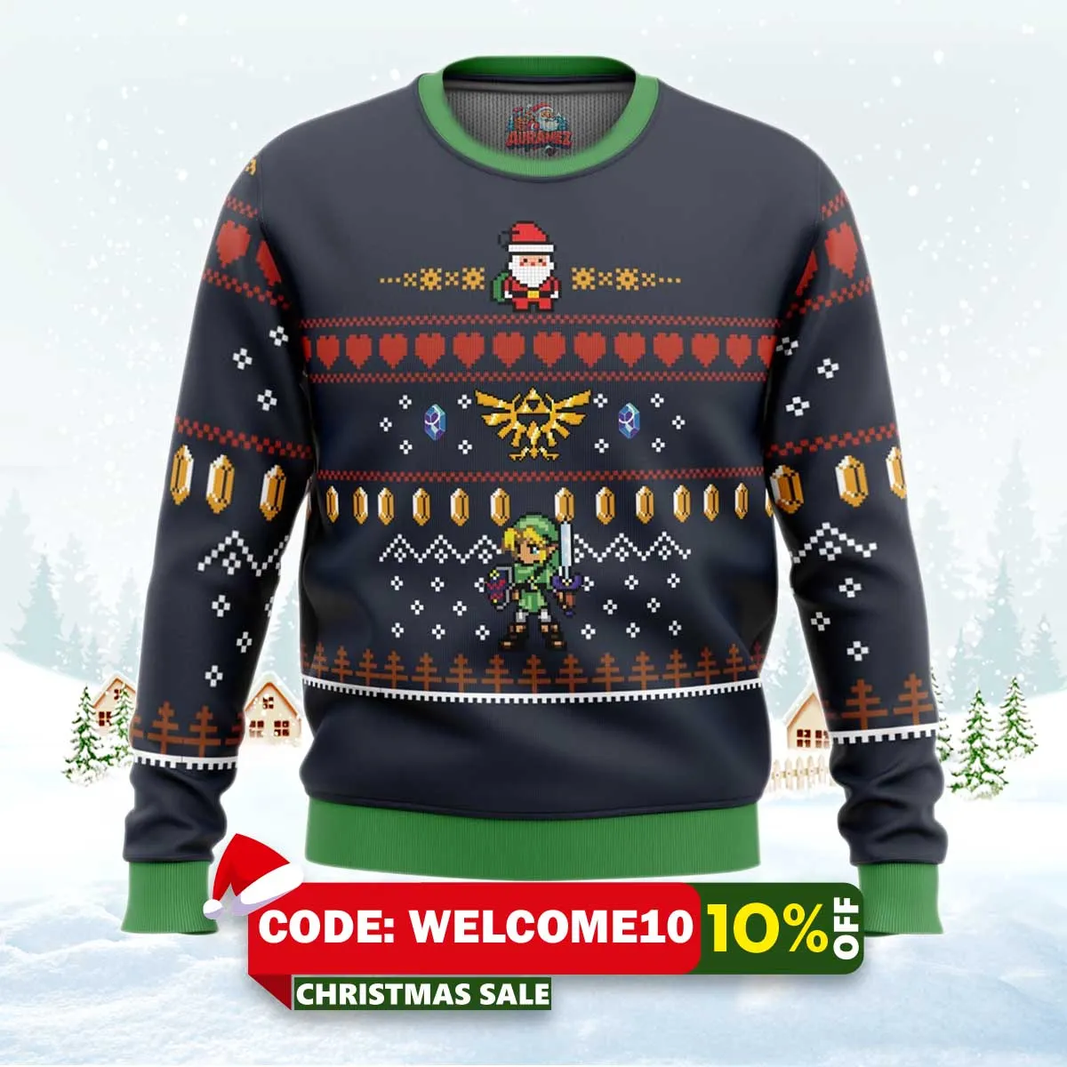 ⚠️ Limited stock available. Order your Zelda Santa Link Ugly Christmas Sweater today from Auramez.com and make this season unforgettable!